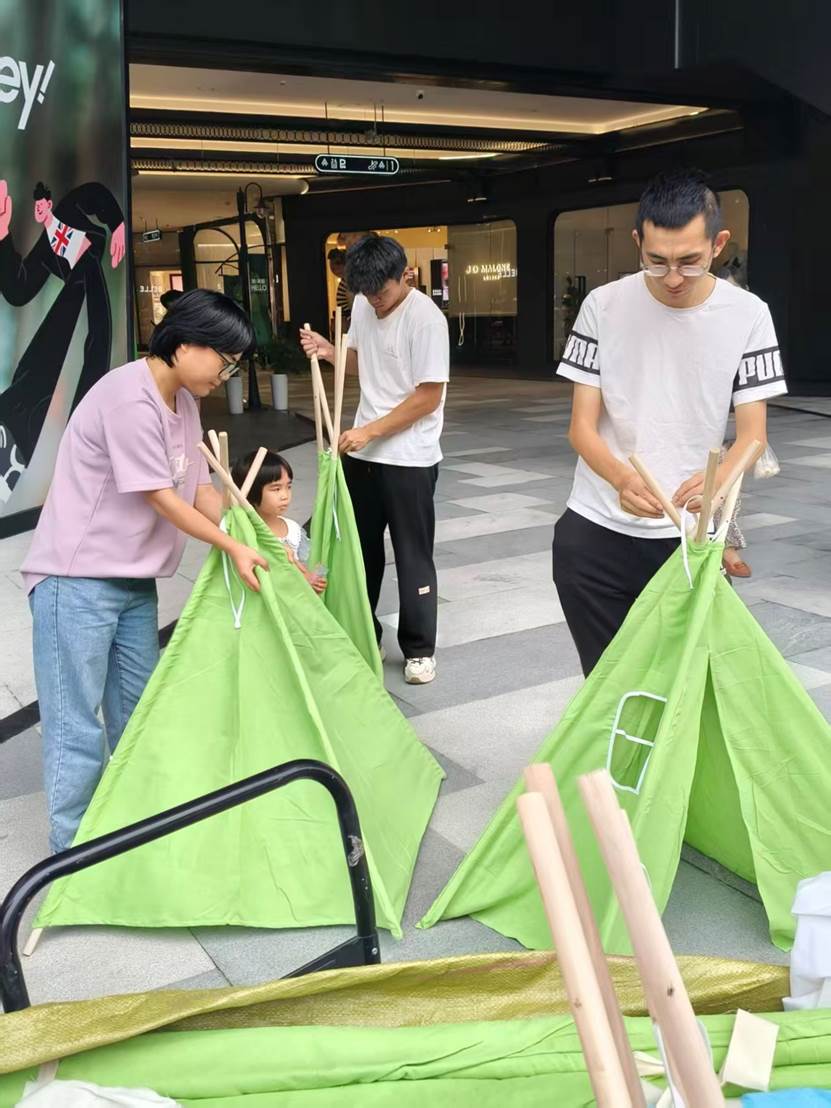 活动现场,志愿者们早早到场,搭起彩色帐篷、摆放分类展板,悬挂“庆国庆·倡环保”的横幅,还将垃圾分类宣传海报与五星红旗贴纸巧妙搭配,把场地划分为“旧物变卖区”“环保问答区”和“空瓶置换区”,节日氛围与环保主题瞬间拉满。不少家长带着孩子提前到场“备战”,有的帮孩子整理玩具、分类摆放,有的和孩子一起在价格标签上画国旗,亲子协作的身影成为现场温暖风景。